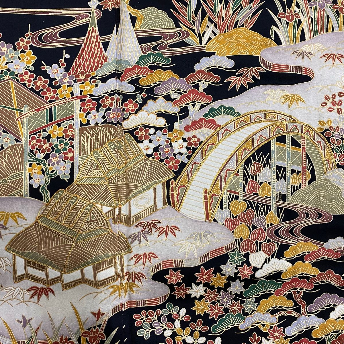 訪問着 身丈160cm 裄丈66cm M 袷 胴抜き 松竹梅 家屋 金糸 金彩 黒 正絹の検索結果