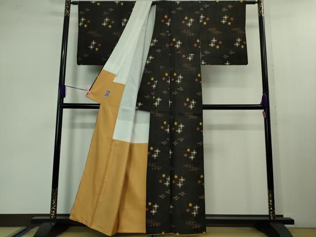 平和屋本店 本場大島紬 吉三郎 吉織物謹製 割込絣織 黒地 DZAB1164kh5