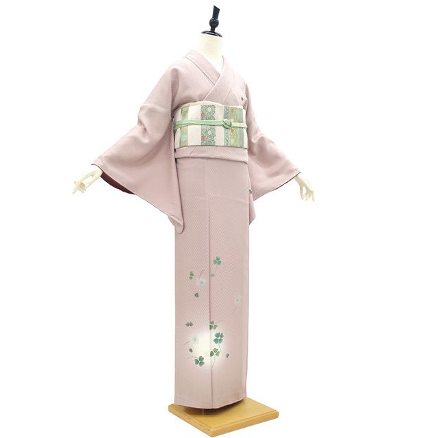 新古品 付下げ 着物 正絹 袷 落款有り 手染め ローズダスト色 クローバー 綿毛 地紋 市松 おしゃれ 春 秋 冬 付け下げ 着物 くすみピンク 仕立て上がり 身丈165 裄丈69.5 Lサイズ みやがわ sb16373 GLOBALQUALITYIMPORTS_COM