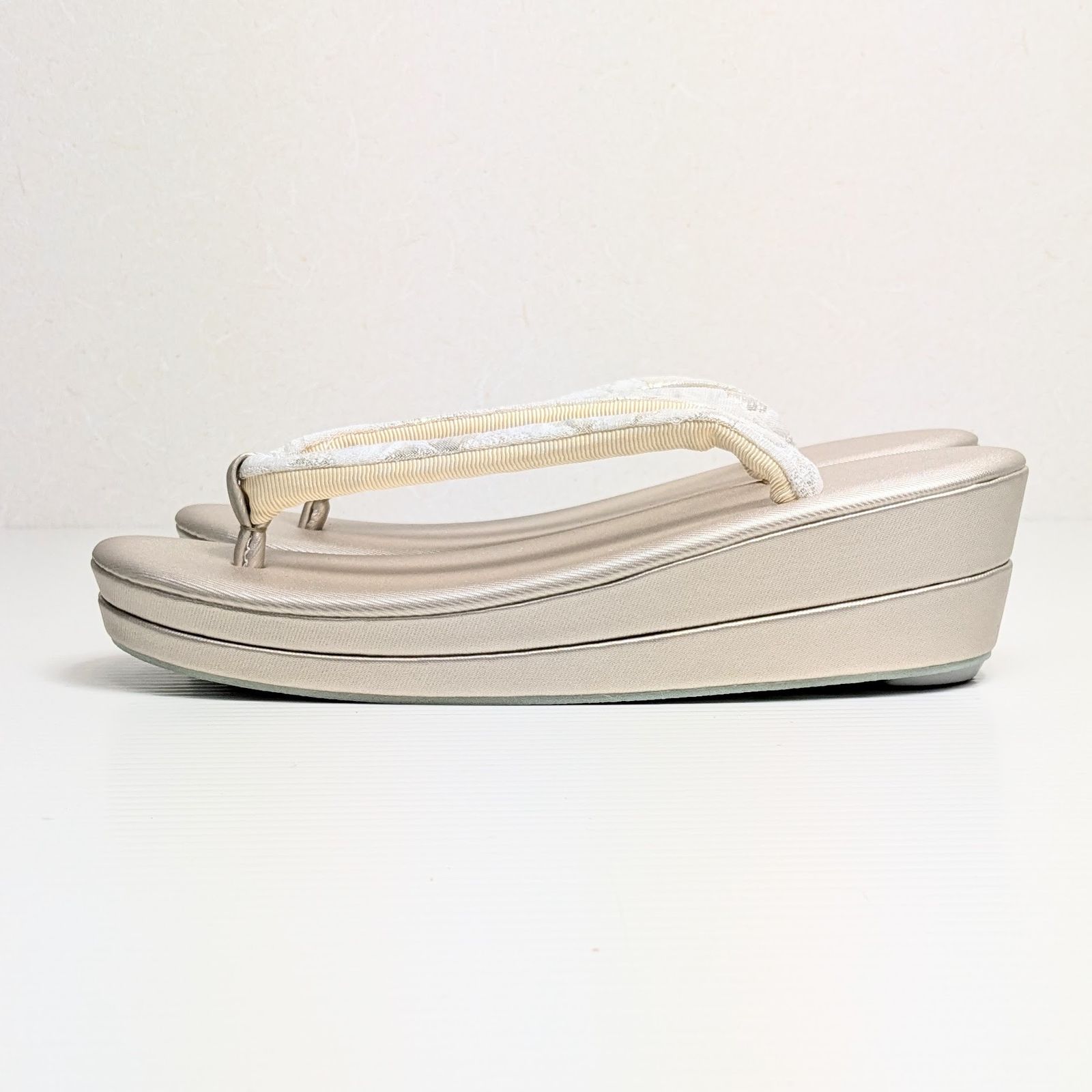 草履バッグセット 帯地 二段 24cm 白地 フリーサイズ 適合足サイズ22.5cm~24.5cm 振袖 成人式 留袖 結婚式 NO42747