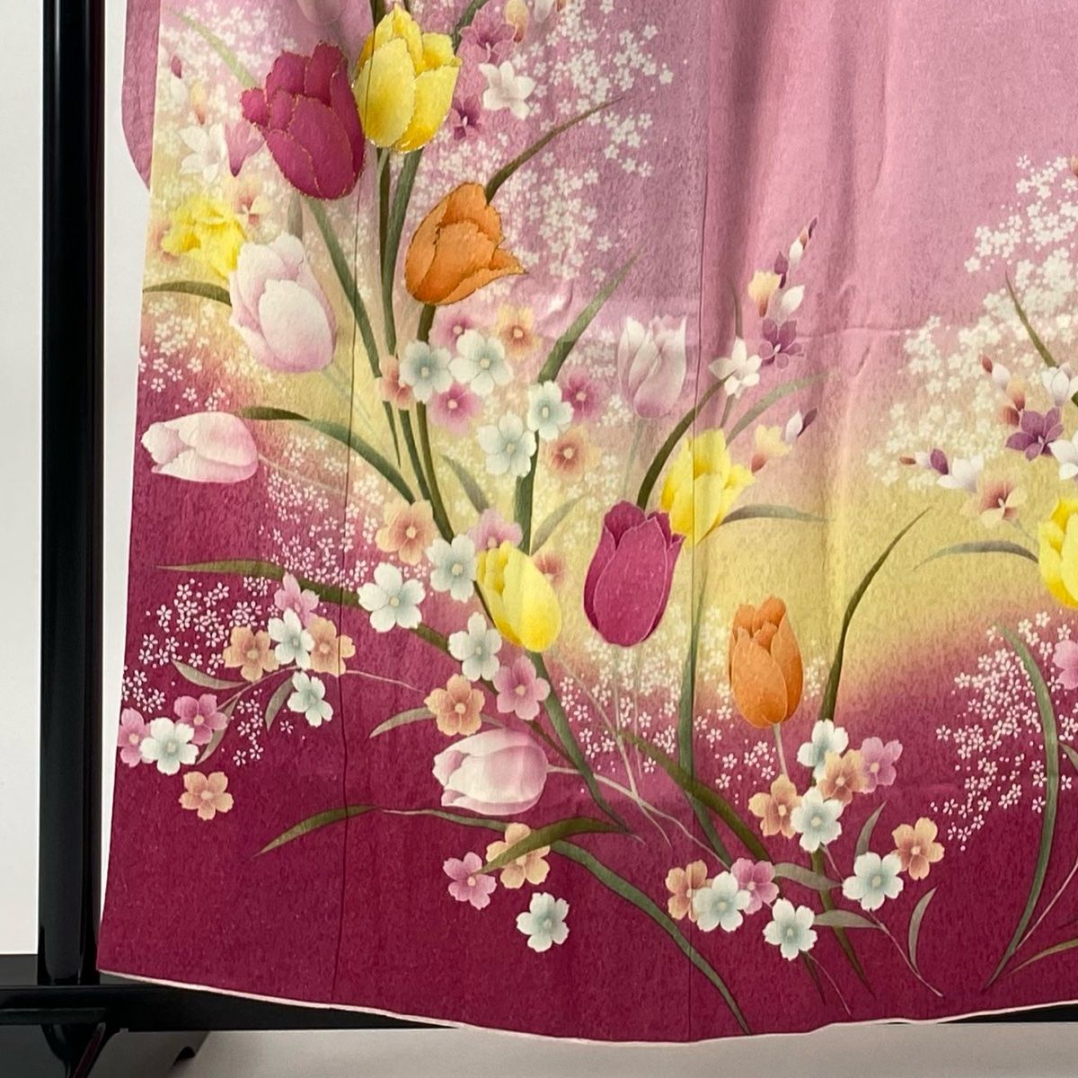 振袖 身丈159cm 裄丈64.5cm M 袷 チューリップ 草花 金通し ラメ ピンク 正絹の検索結果