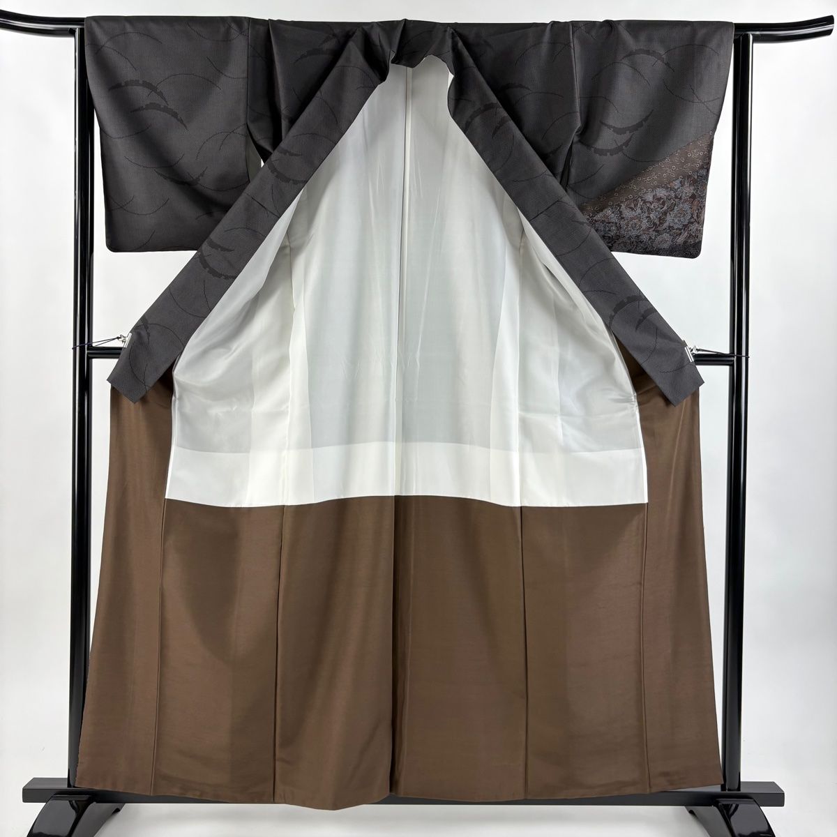 付下げ 身丈159cm 裄丈63.5cm S 袷 草花 雪芝 紬地 焦茶色 正絹 秀品の検索結果