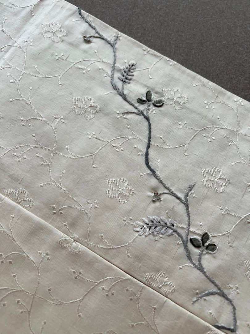 刺繍にビーズでとても可愛く、ナチュラルなデザインの帯です。