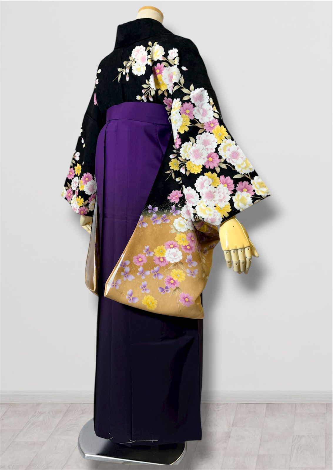 着物 袴 帯 3点セット セット販売 卒業式 に レディース袴セット 成人式 卒業式に 華やか和装 黒 ブラック 紫 GLOBALQUALITYIMPORTS_COM