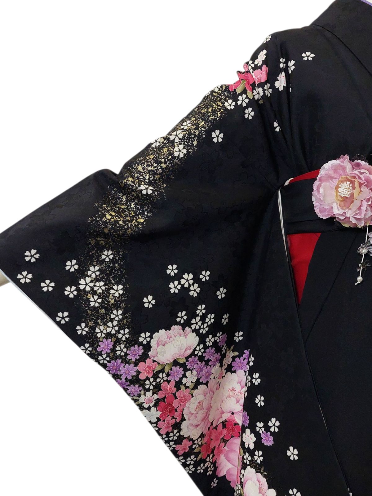着物 袴 帯 3点セット セット販売 卒業式 に レディース袴セット 成人式 卒業式に 華やか和装 黒 ブラック 桜 花柄 95-12 GLOBALQUALITYIMPORTS_COM