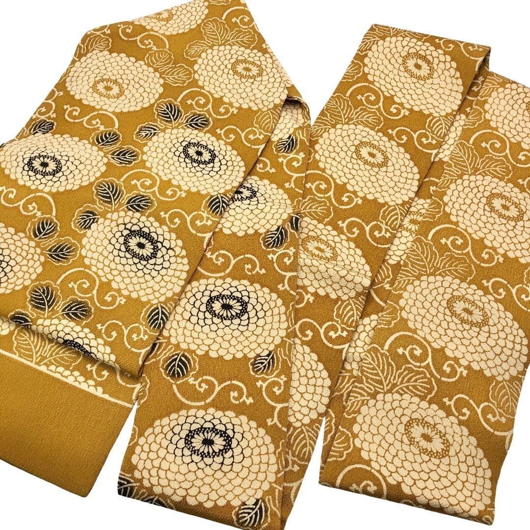 名古屋帯 型染 菊の花模様 縮緬 濃卵色 O-5466 GLOBALQUALITYIMPORTS_COM