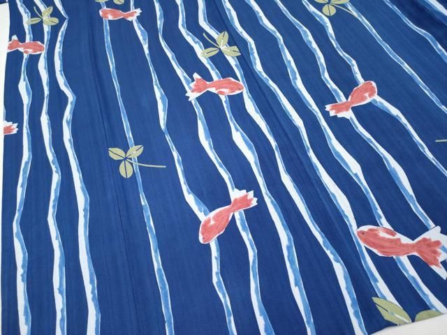 平和屋着物 上 夏物 世界的ファッションデザイナー 山本寛斎 kansaiブランド 小紋 単衣 金魚 紺青色 洗える着物 CYAA3116s5 GLOBALQUALITYIMPORTS_COM
