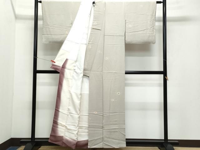 小紋 身丈155.5cm 裄丈65cm M 袷 落款 段縞 梅 灰色 正絹