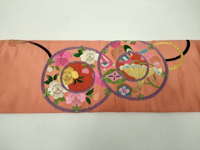 平和屋着物 アンティーク 大正ロマン 九寸名古屋帯 駒刺繍 総刺繍 鏡裏花文 宝尽くし 金糸 正絹 DAAY1189ps GLOBALQUALITYIMPORTS_COM