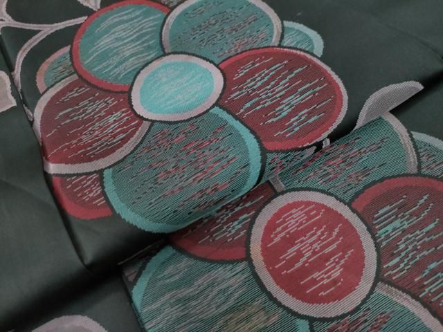 平和屋着物 夏物 アンティーク 大正ロマン 丸帯 引き抜き帯 唐織 風景鹿の子草花文 銀糸 正絹 DAAX0507cm
