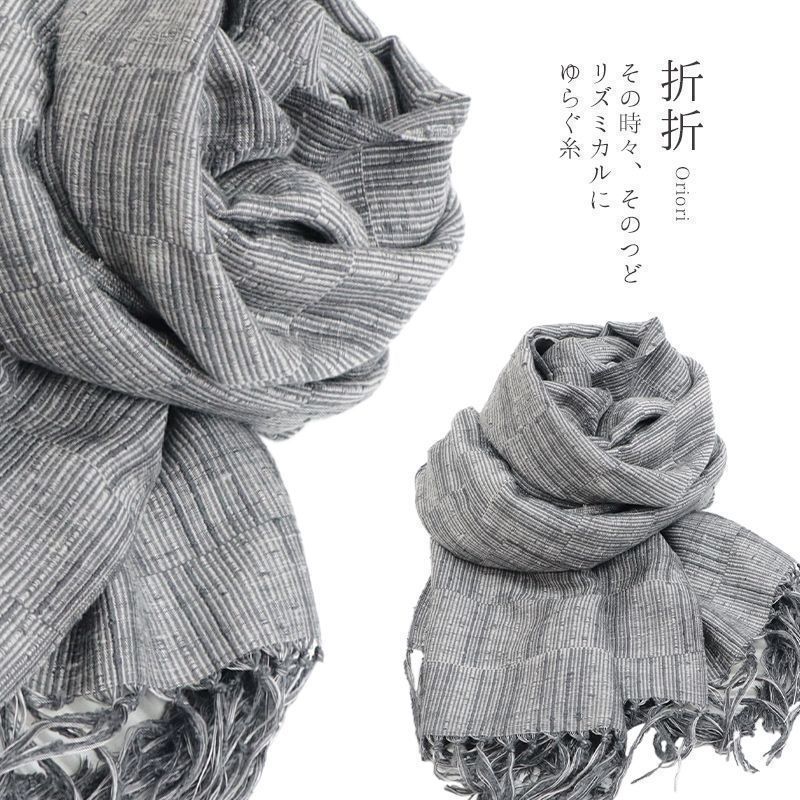 結城紬 ショール 真綿 ストール フリンジショール 絹100% シルク100% 着物 洋服兼用 まわた ショール 奥順 結城紬 育てるショール 網代 あじろ 〔2色〕 10011142 GLOBALQUALITYIMPORTS_COM