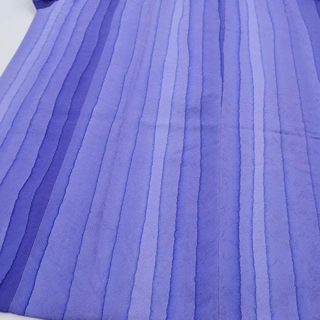 道中着 身丈109cm 裄丈66cm M 和装コート 横縞 ぼかし 青紫 正絹