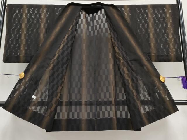 平和屋着物 上 スリーシーズン 道中着 塵除け 道中着 ロング丈 市松紋紗 吉祥文 暈し染め 黒地 CYAA3148s5 GLOBALQUALITYIMPORTS_COM