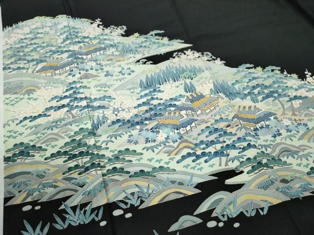 黒留袖 着物 創業460年 千總 金駒シシュウ 風景文 比翼付き 伊勢丹扱い 比翼付 身丈155cm 裄61cm 正絹 結婚式 T3639