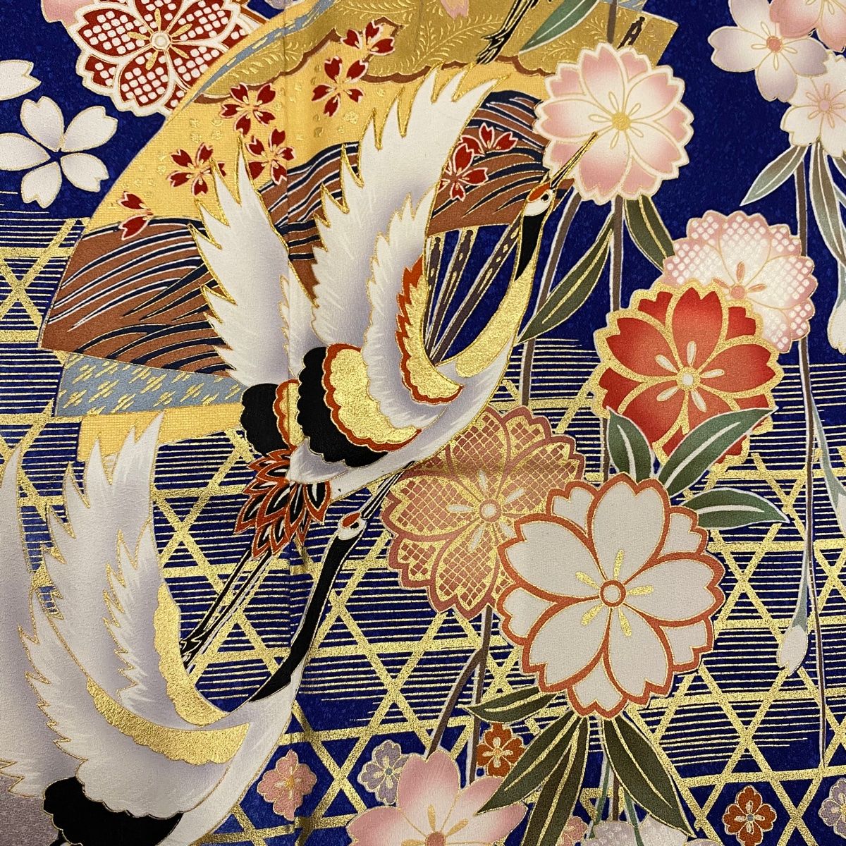 振袖 身丈173cm 裄丈70cm L 袷 鶴 枝垂れ桜 金糸 金彩 紺色 正絹の検索結果