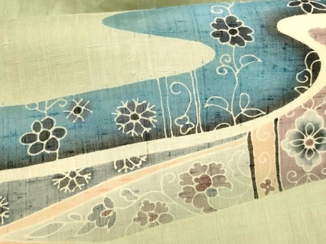 平和屋着物 夏物 九寸名古屋帯 流水草花文 麻 DAAX0030cm GLOBALQUALITYIMPORTS_COM