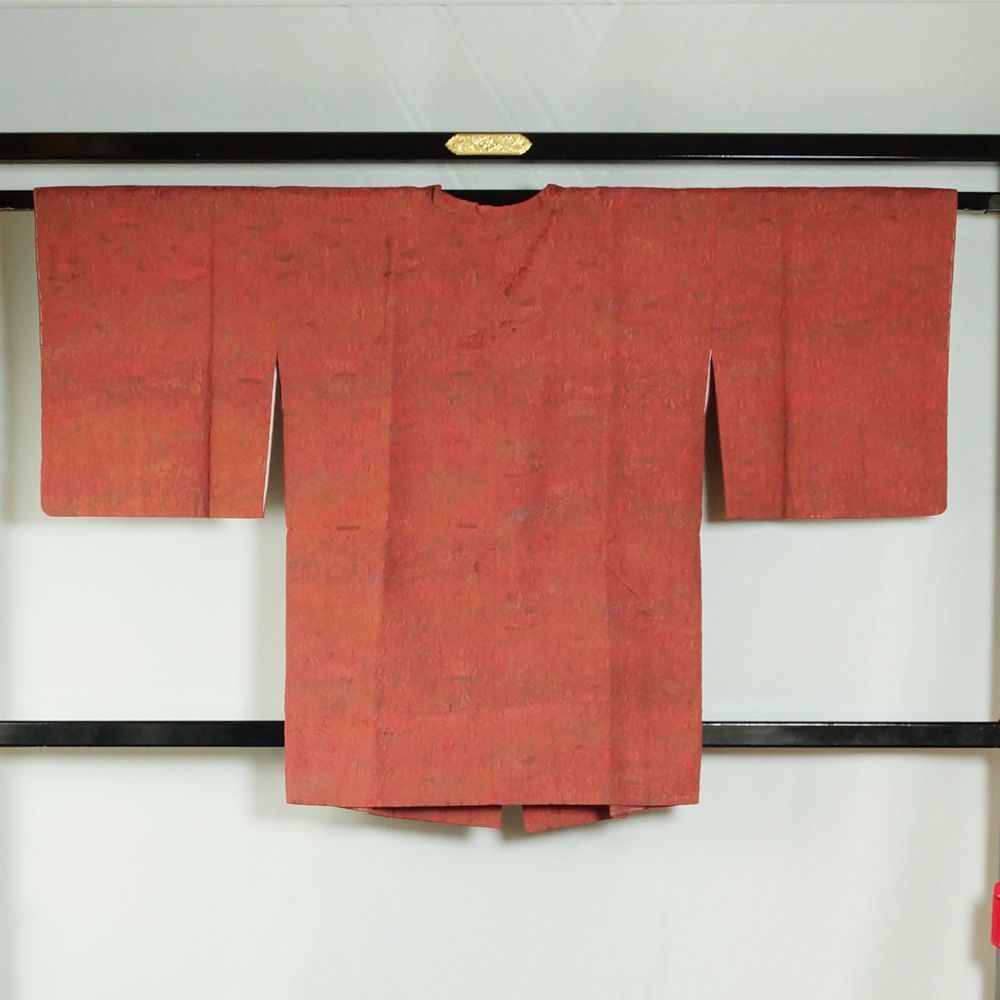 道行 身丈101.5cm 裄丈62.5cm S 和装コート 角衿 草花 ぼかし 赤茶 正絹