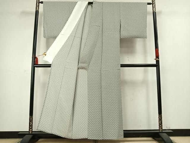 江戸小紋 身丈163.5cm 裄丈65cm M 袷 角通し 地紋 青灰色 正絹