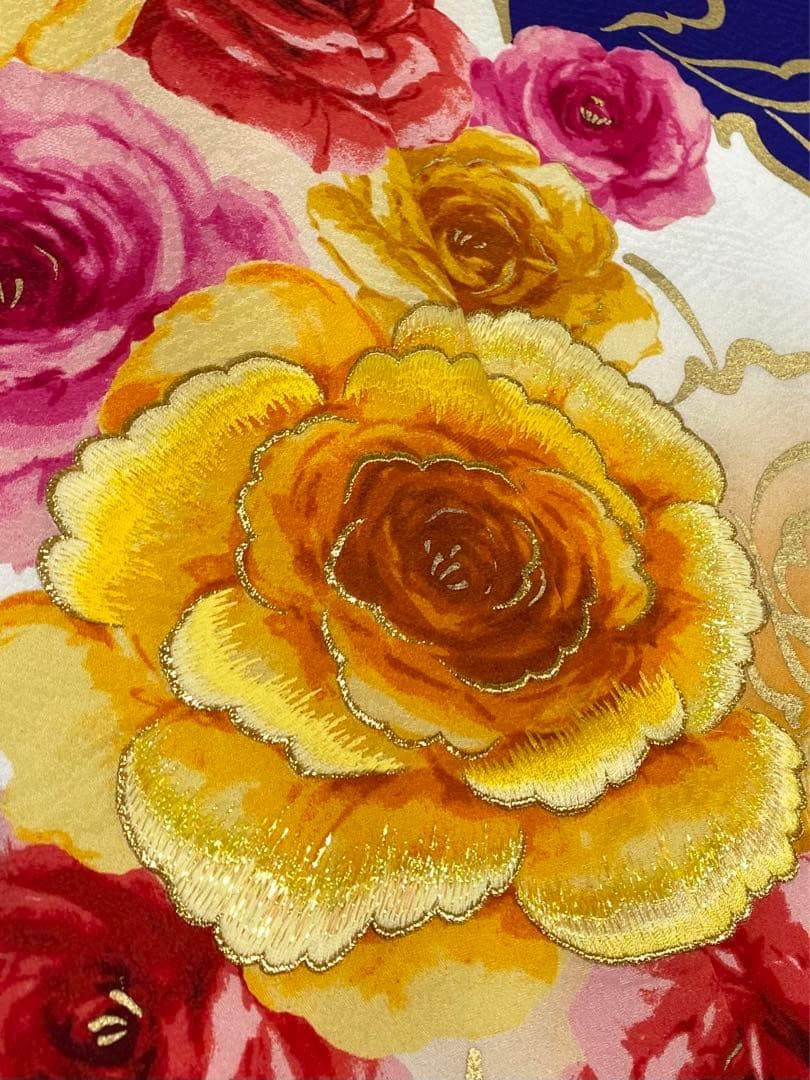 振袖 豪華 刺繍 金彩 紋意匠 大輪 薔薇 身丈171cm パールトーン加工済の検索結果