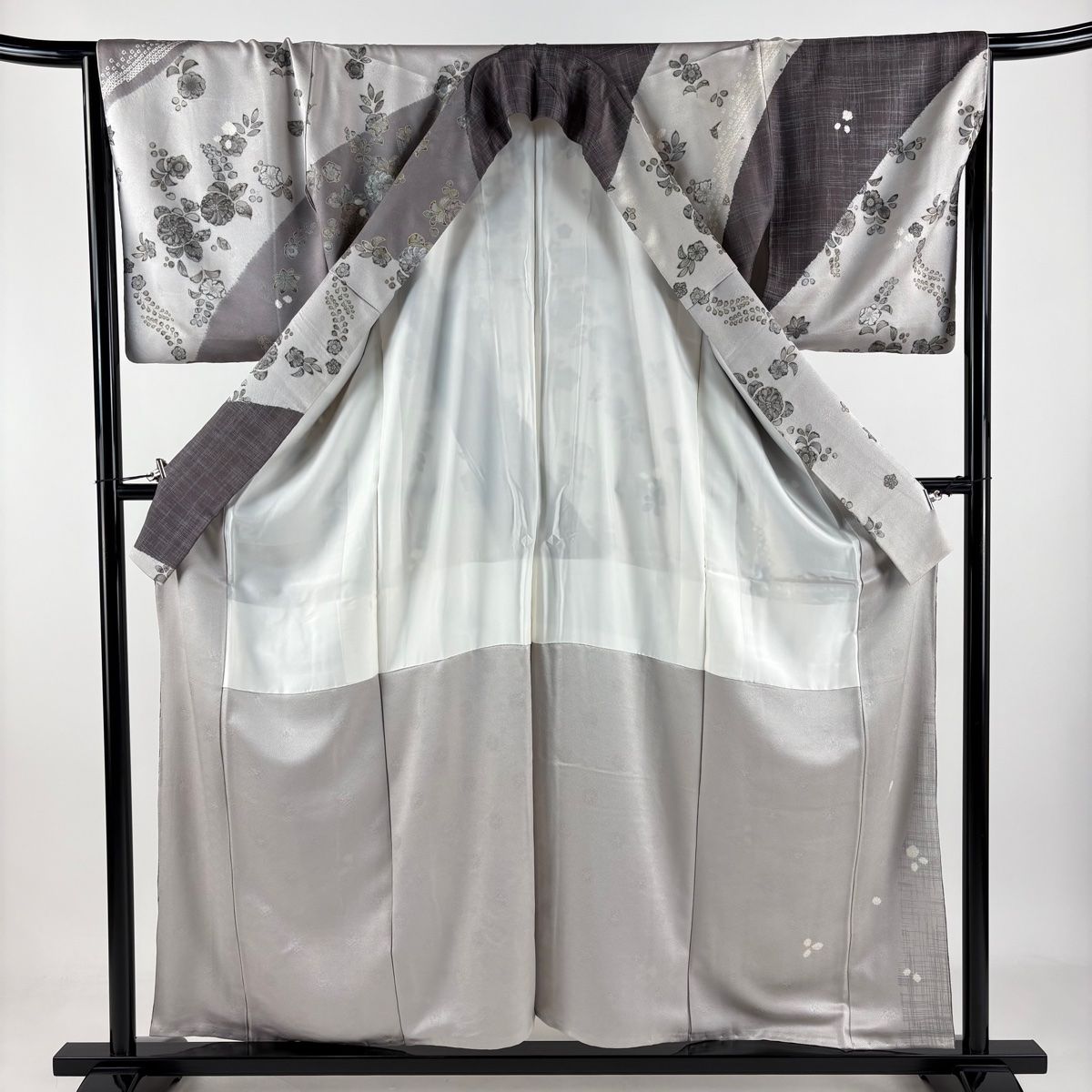 訪問着 身丈155cm 裄丈66.5cm M 袷 落款 辻が花 金彩 ぼかし 灰色 正絹