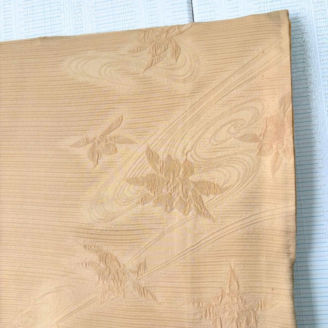色無地 着物 名古屋帯 帯揚げ 帯締め 4点セット 正絹 ベージュ 無地紋なし 植物地紋 身丈156cm 裄63.5cm 帯354cm 上品 コーディネートセット 秋冬 お茶会 入学式 卒業式 七五三 セミフォーマル カジュアル対応 おしゃれきもの GLOBALQUALITYIMPORTS_COM