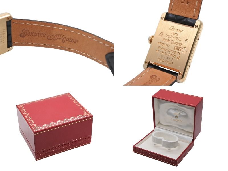 CARTIER カルティエ マストタンク ヴェルメイユ SM 腕時計 W1004054 クォーツ アリゲーターベルト ブラック レディース 4b008175 GLOBALQUALITYIMPORTS_COM