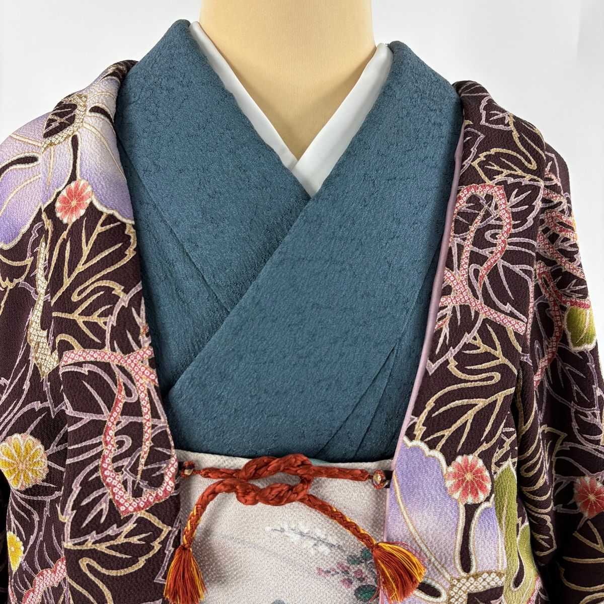 羽織 身丈95cm 裄丈64cm M 菊 金彩 縮緬 茶紫 正絹の検索結果