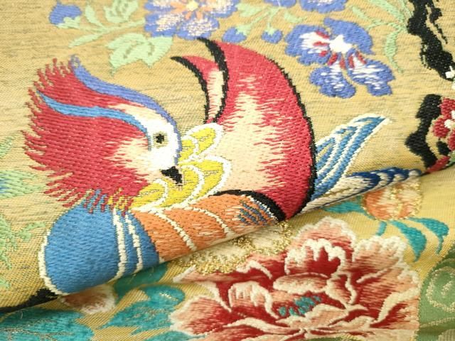 平和屋着物 アンティーク 大正ロマン 九寸名古屋帯 鴛鴦花文 金糸 正絹 CAAY2440hyの検索結果
