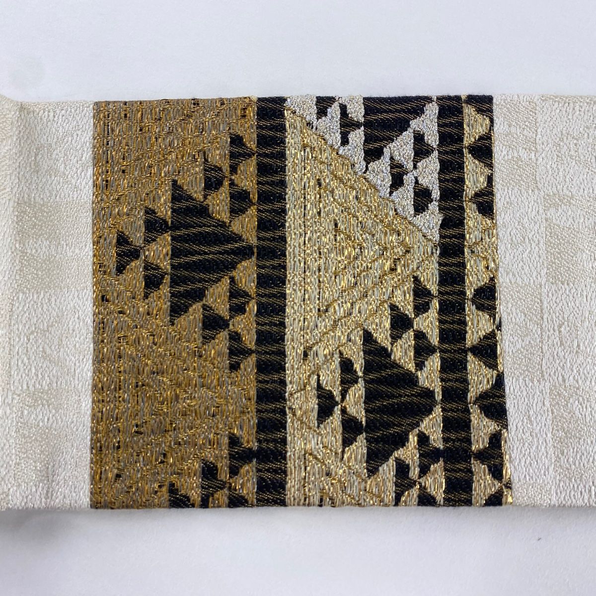 名古屋帯 鱗 縞 金糸 箔 ベージュ 正絹 GLOBALQUALITYIMPORTS_COM