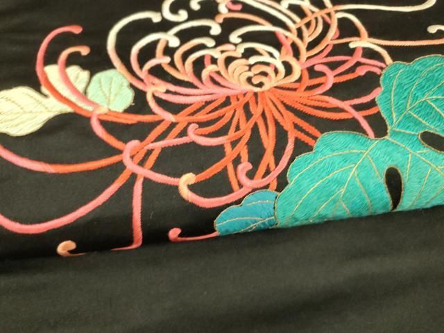 平和屋着物 アンティーク 大正ロマン つけ帯 総刺繍 花蝶文 乱菊 黒地 金糸 正絹 DAAY8203cmの検索結果