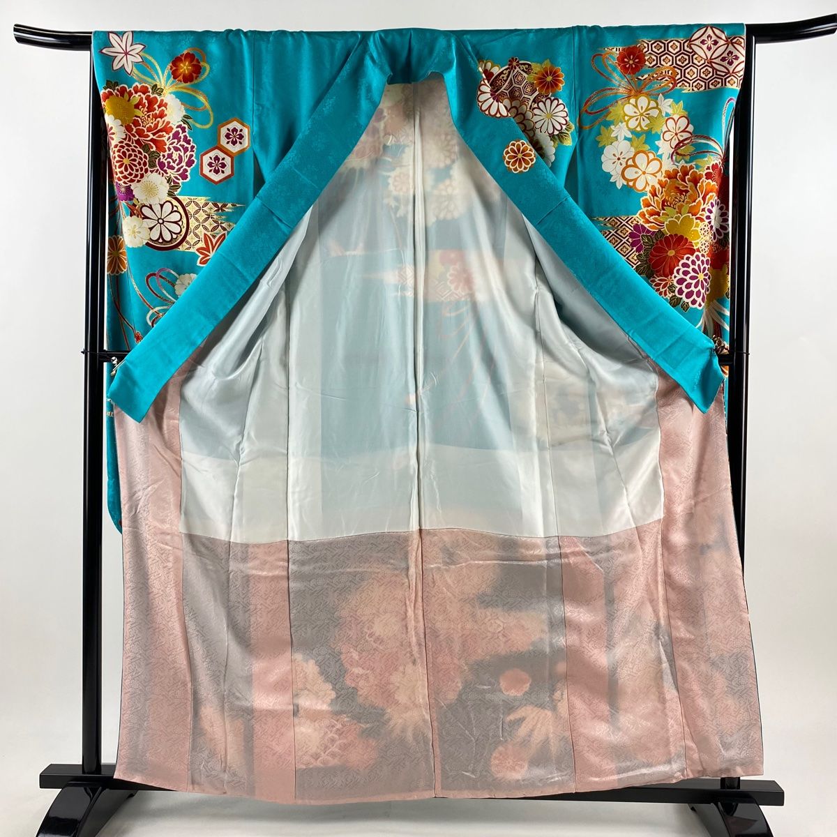 振袖 身丈160.5cm 裄丈65cm M 袷 菊 花丸文 金糸 金彩 水色 正絹の検索結果