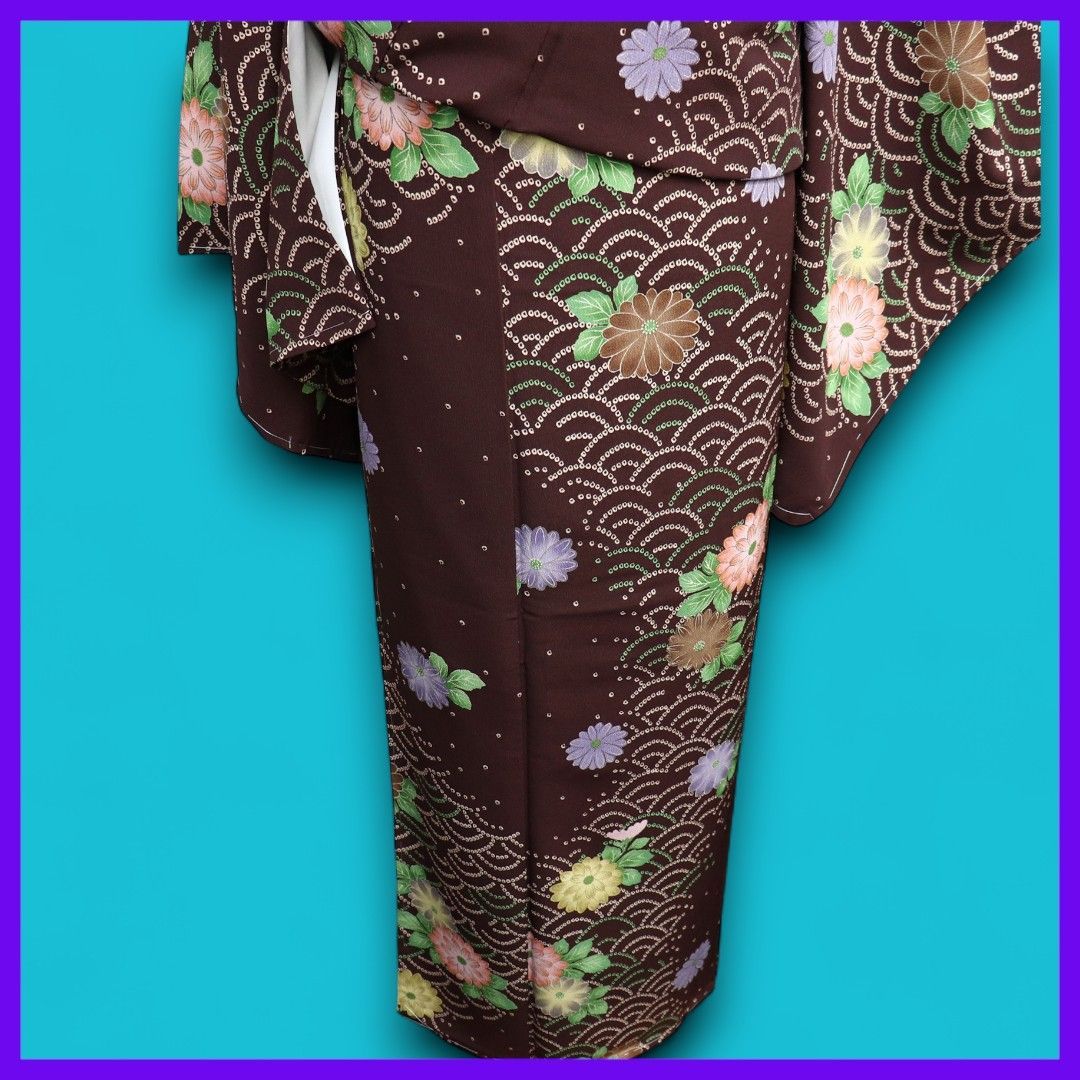 三日月とうさぎ a0505 洗える着物 付下げ小紋 菊に青海波 GLOBALQUALITYIMPORTS_COM
