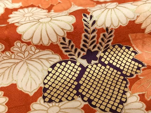 振袖 身丈159cm 裄丈64.5cm M 袷 菊 宝尽くし 金通し 金彩 朱色 正絹