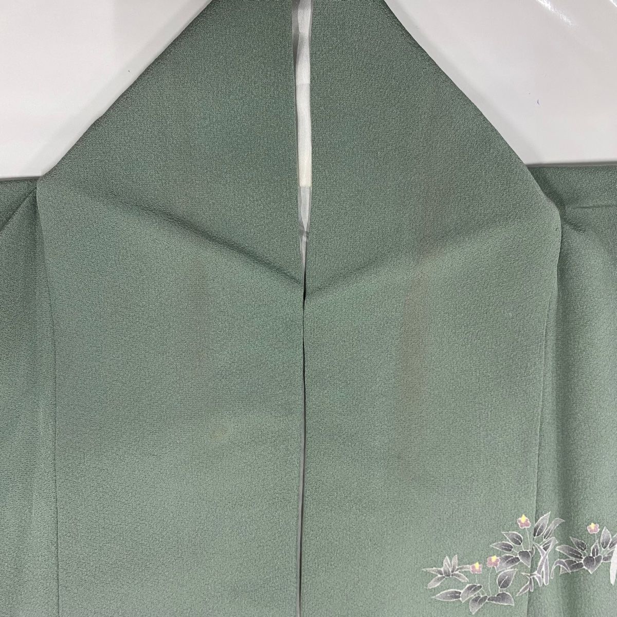 訪問着 身丈163cm 裄丈65cm M 袷 松雨 落款 枝花 流水 金銀彩 染め分け 薄緑 正絹 秀品