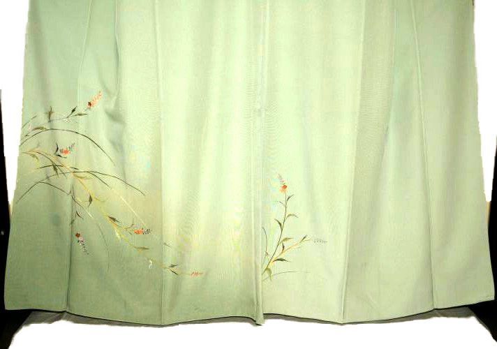 訪問着 身丈160cm 裄丈64cm M 袷 花唐草 悠斗刺繍 金銀糸 青緑 正絹 秀品