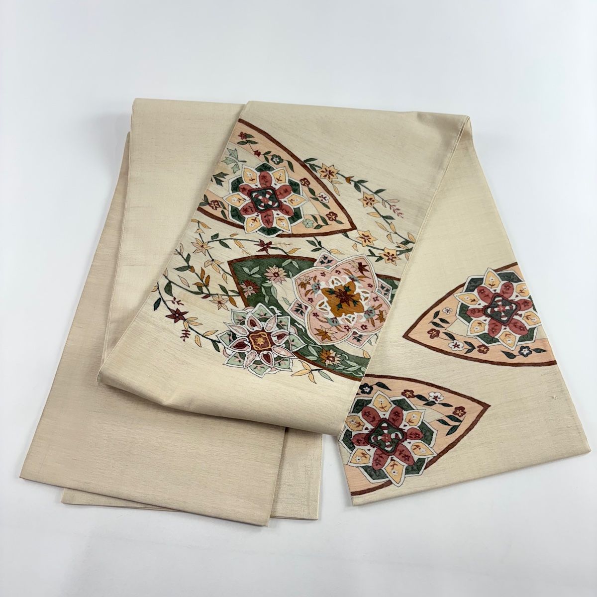 袋帯 華文 草花 金糸 ベージュ お太鼓柄 正絹の検索結果