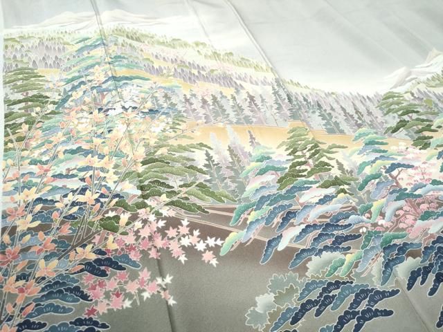 平和屋着物 十日町友禅作家 阿部佳雪 色留袖 遠山霞樹林文 暈し染め 正絹 CAAW8293ycの検索結果