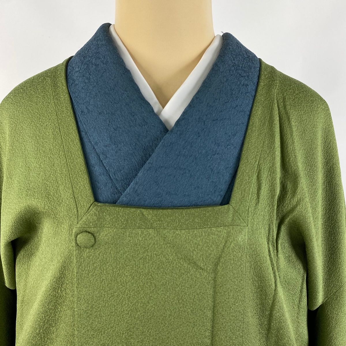 道中着 身丈104cm 裄丈64.5cm M 和装コート リバーシブル 地紋 裾ぼかし 深緑 正絹