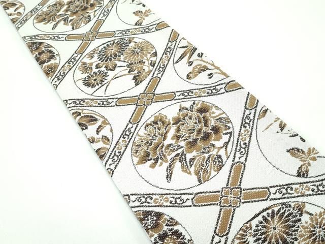 平和屋着物 上 両面 半幅帯 唐織 兎 雪輪草花文 リボン織 金糸 やまと誂製 CZAA3484s5