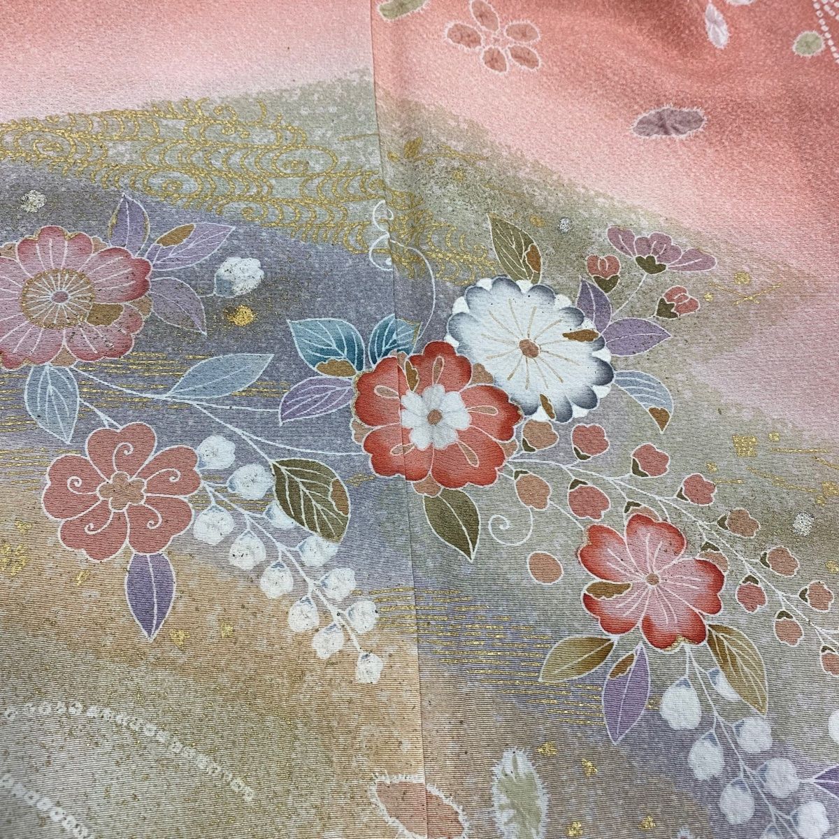 訪問着 身丈163.5cm 裄丈68cm L 袷 ますいわ屋 草花 霞 絞り 金銀彩 サーモンピンク 正絹 秀品の検索結果