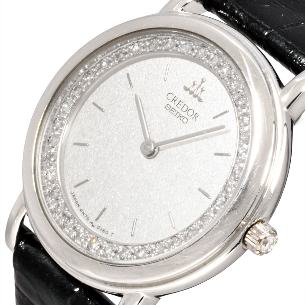 セイコー SEIKO 4N70-0150 クレドール 腕時計 シルバー文字盤 Pt900 ダイヤ プラチナ 無垢 レディース GLOBALQUALITYIMPORTS_COM