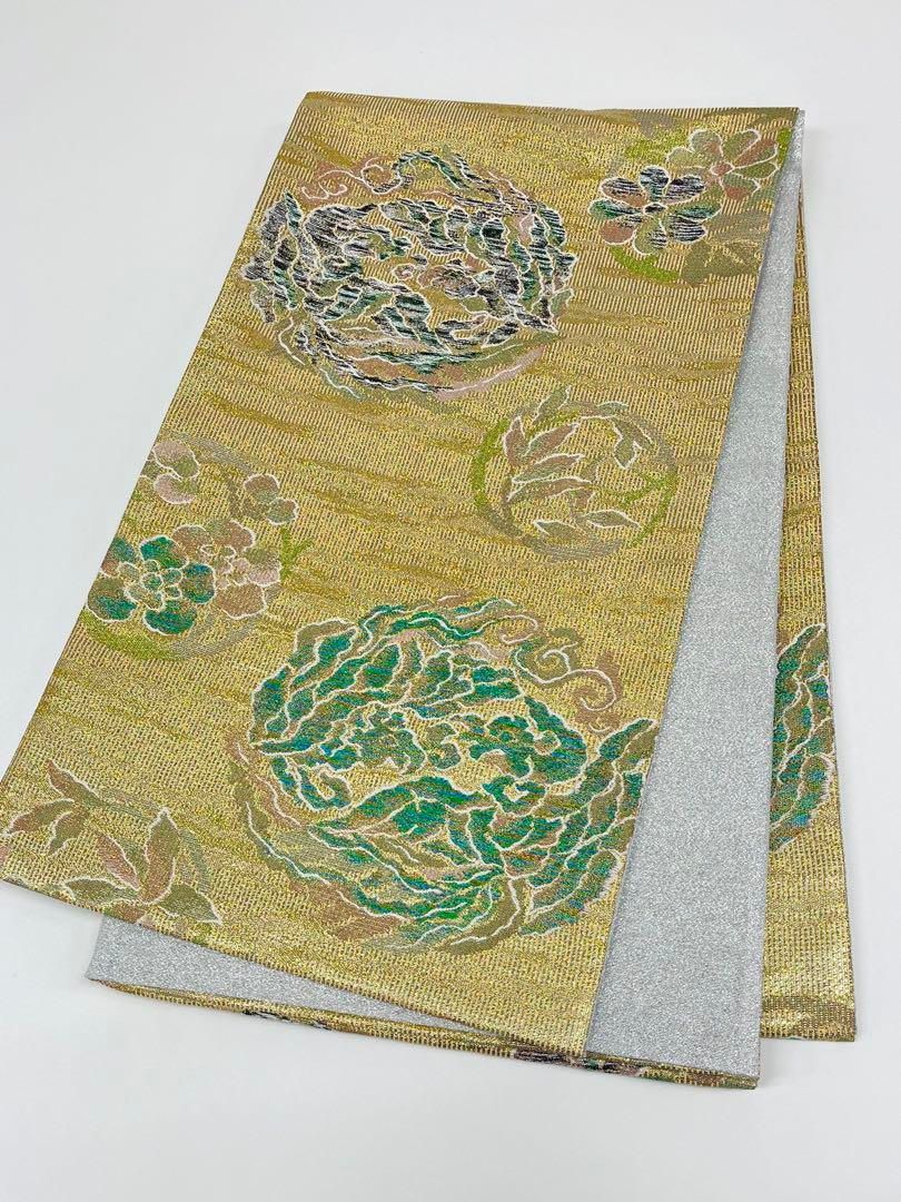 平和屋着物 上 スリーシーズン 春夏秋 西陣 丸勇謹製 六通柄袋帯 唐織 七宝花文 プラチナ箔 CZAA3905s5