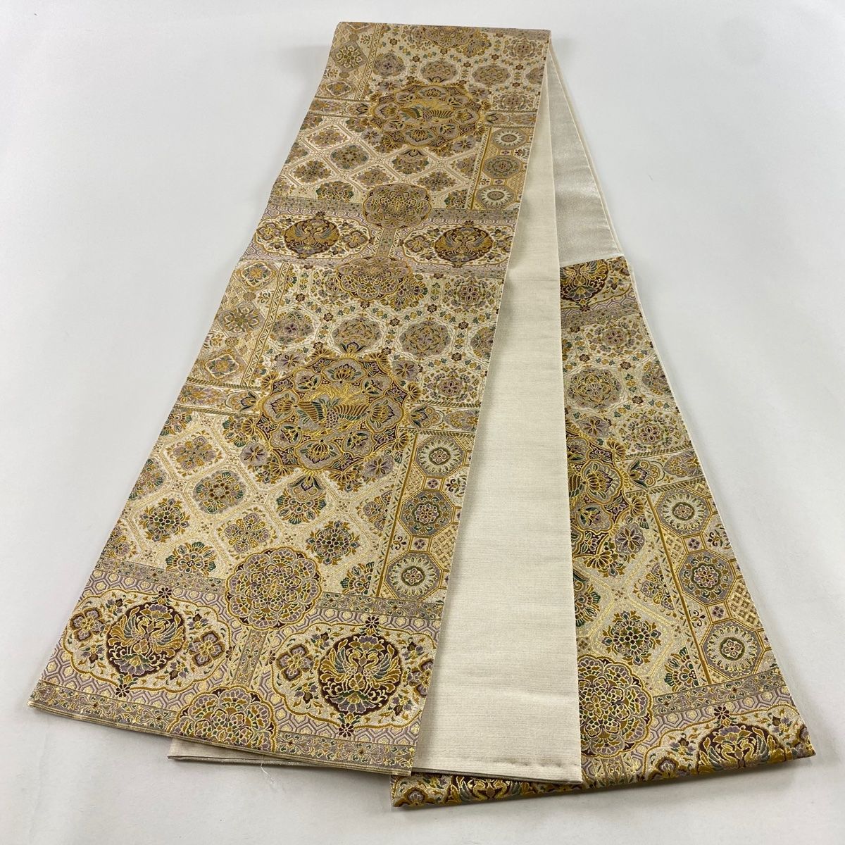 袋帯 秀品 落款 華文 花鳥 箔 金色 六通 正絹 GLOBALQUALITYIMPORTS_COM