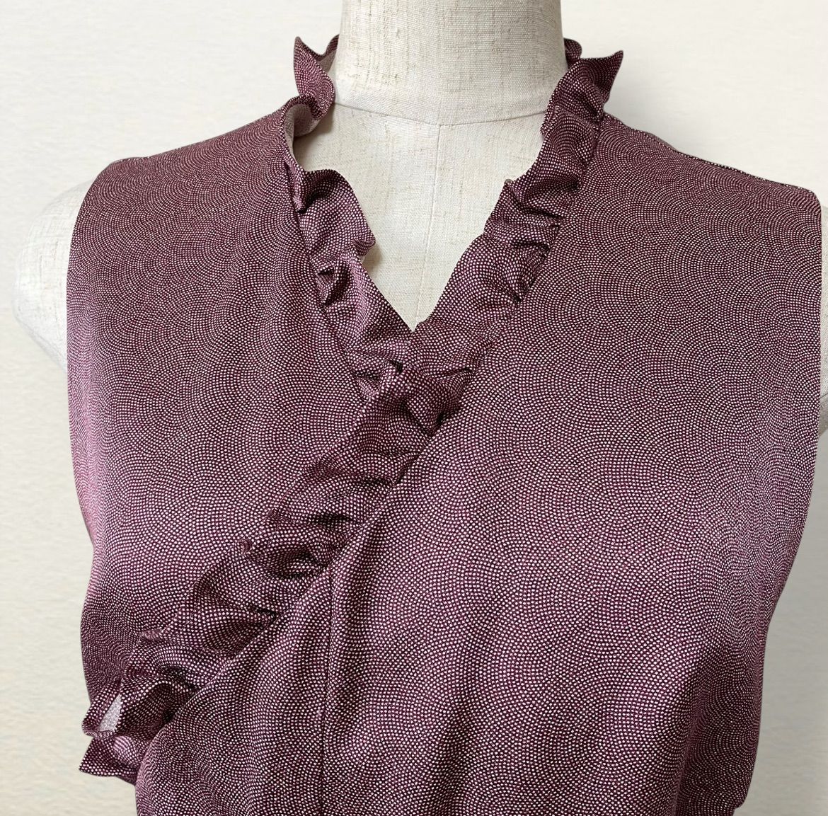 Newデザイン ︎江戸小紋 サッシュベルト付き Kanataの茶道ドレス 落ち着いた暗めの赤が大人な雰囲気 鮫小紋のお着物で作った 茶道お稽古着 手提げ袋付 逆勝手兼用 GLOBALQUALITYIMPORTS_COM