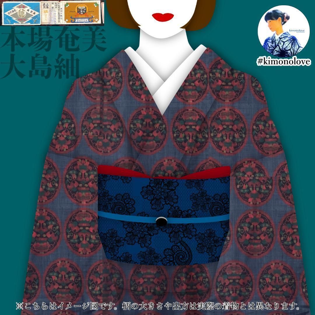 本場奄美大島紬 着物 泥大島 益村絹織物製 正絹 華丸紋 紺色 ビンテージ着物 リユース品 オゾン消臭サービス A-1809 GLOBALQUALITYIMPORTS_COM