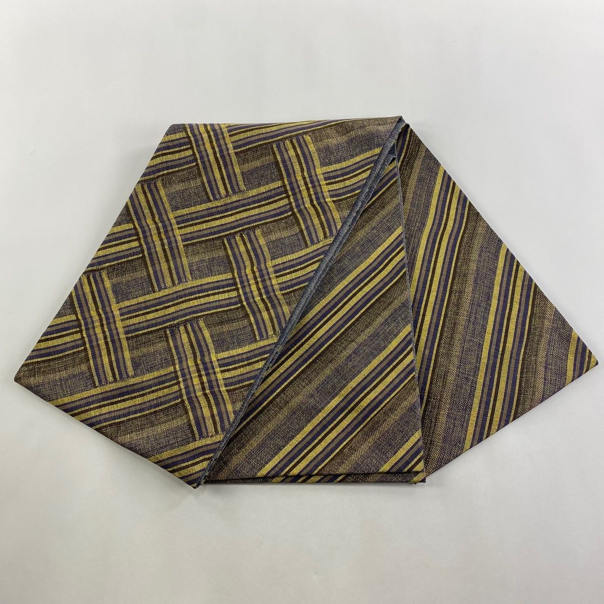 袋帯 斜縞 幾何学模様 金糸 灰紫 お太鼓柄 正絹 GLOBALQUALITYIMPORTS_COM