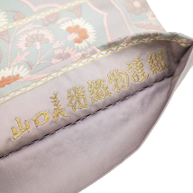 新古品 袋帯 ♥ フォーマル 正絹 山口美術織物 唐織 京都 西陣 時代更紗 くすみカラー 淡紫 ピンク 水色 狩猟文 花唐草 鳥 美しい唐織 春 秋 冬 セミフォーマル 上 袋帯 仕立て上がり みやがわ sb54704 GLOBALQUALITYIMPORTS_COM