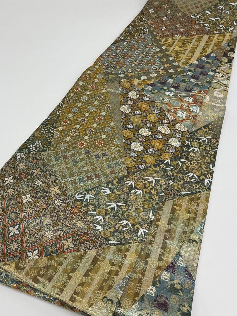 丸帯 正倉院名物裂集成 寄せ柄 牡丹唐草 金糸 箔 金色 全通 正絹