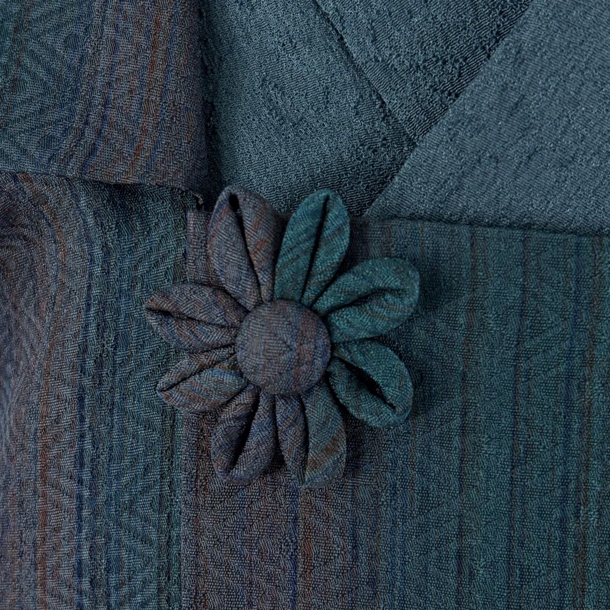 道行 身丈106cm 裄丈68cm L 坂東三津五郎 和装コート 被布衿 やまと 落款 縦縞 地紋 青緑 正絹の検索結果