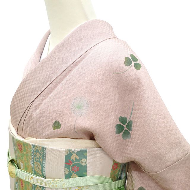 新古品 付下げ 着物 正絹 袷 落款有り 手染め ローズダスト色 クローバー 綿毛 地紋 市松 おしゃれ 春 秋 冬 付け下げ 着物 くすみピンク 仕立て上がり 身丈165 裄丈69.5 Lサイズ みやがわ sb16373 GLOBALQUALITYIMPORTS_COM